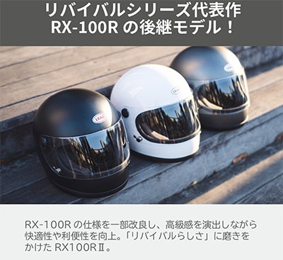 - リード工業のRX-100RⅡは、1980年代の伝説的モデル「RX-100」を現代の安全基準(SG・PSC全排気量対応)で復刻させた「リバイバルシリーズ」の最新フルフェイスヘルメットです。