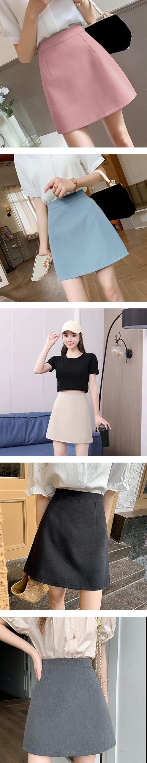 - 「AORKU」のPUレザー Aライン ミニタイトスカートは、38cmから43cm程度のショート丈で、美脚・脚長効果を狙った韓国風のタイトなシルエットが特徴です。