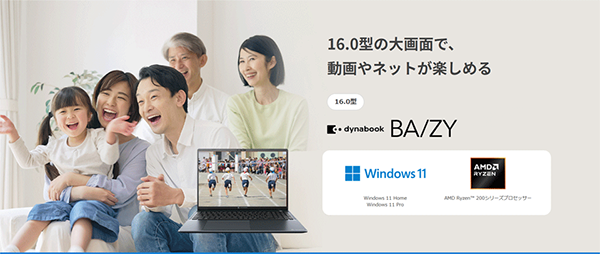 ▶ 楽天市場のサイト: 新品 ノートパソコン PC dynabook BA/ZY 16型 Windows11 CPU AMD Ryzen7 250 メモリ 16GB SSD 512GB 無線LAN Wi-Fi6 Office なし