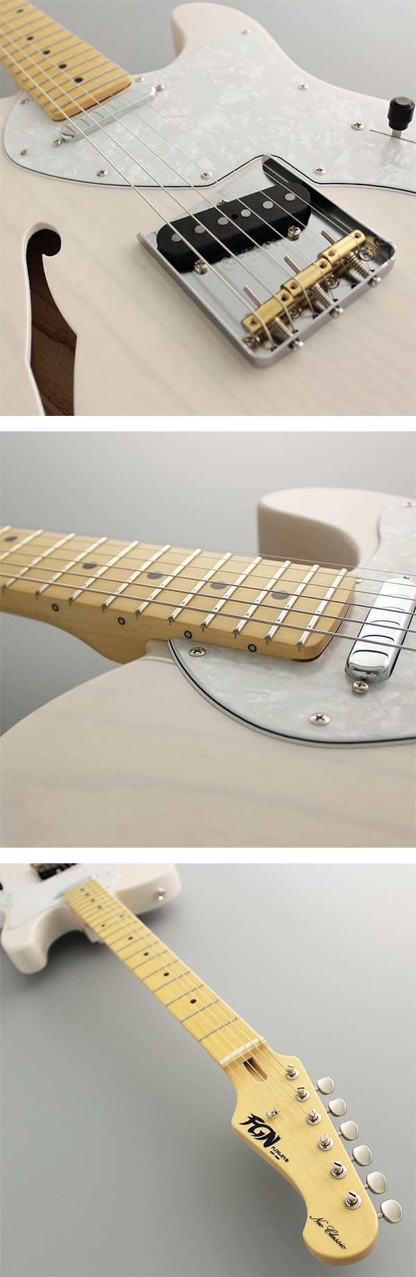 ▶ セミホロウ構造のアッシュボディ、メイプル指板のテレキャスタータイプ