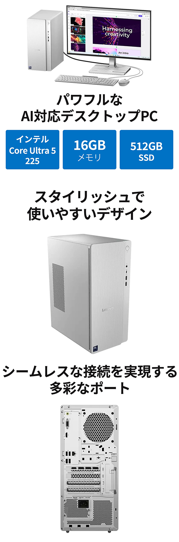 ■注目のおすすめの一台! 新品 デスクトップパソコン PC レノボ Lenovo IdeaCentre Tower 17IAS10 Windows11 CPU Core Ultra5 225 メモリ 16GB SSD 512GB 有線・無線LAN Wi-Fi7 モニター なし MS Office 2024搭載可能