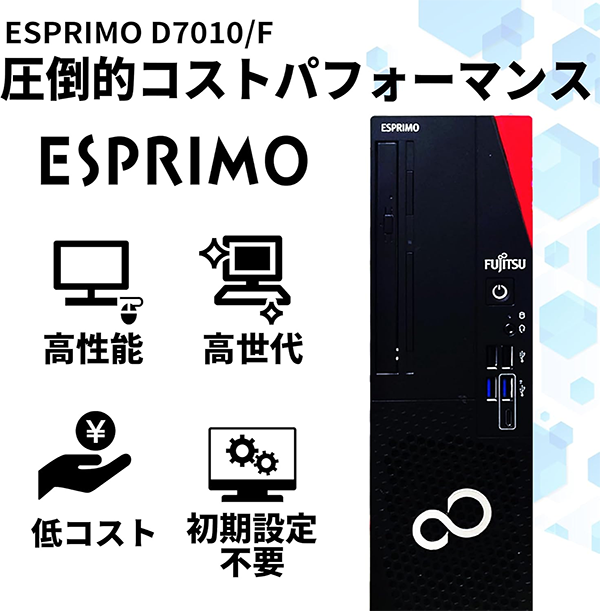 - 富士通のデスクトップPC ESPRIMO D7010/Fは、ビジネス用途において非常にバランスの良い構成です。