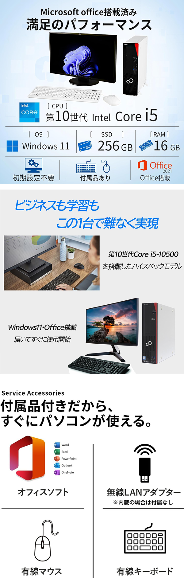 ▶ Amazonのサイト: 中古 デスクトップパソコン PC 富士通 FMV ESPRIMO D7010/F Windows11 CPU 10世代 Core i5-10500 メモリ 16GB SSD 256GB 無線LAN モニター なし MS Office 2021