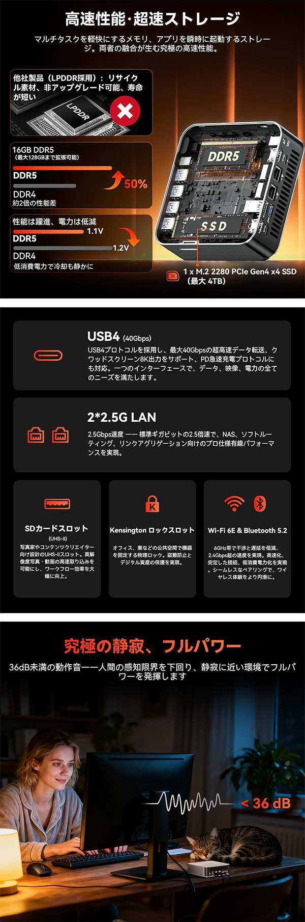 - 非常にコンパクトながら、Ryzen 9 を搭載したハイエンドなミニPCです。