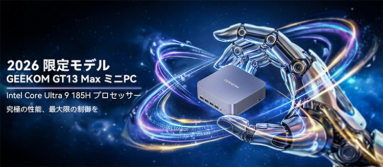 ■注目のおすすめの一台! 新品 ミニデスクトップパソコン PC GEEKOM GT13 Max AI Windows11 CPU Intel Core U9-185H メモリ 32GB SSD 512B 無線LAN Wi-Fi7 モニター なし 4画面出力