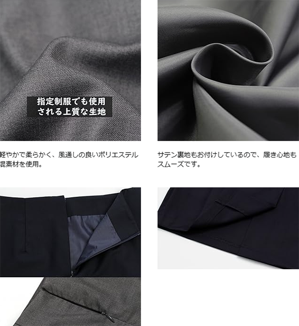 - オフィスでの事務服やスーツ用、さらにはカジュアルなデイリーユースまで幅広く対応できるシンプルなペンシルスカートです。