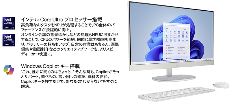 - 最新のインテルプロセッサーとAI機能を搭載したスマートで高性能なデスクトップPC。