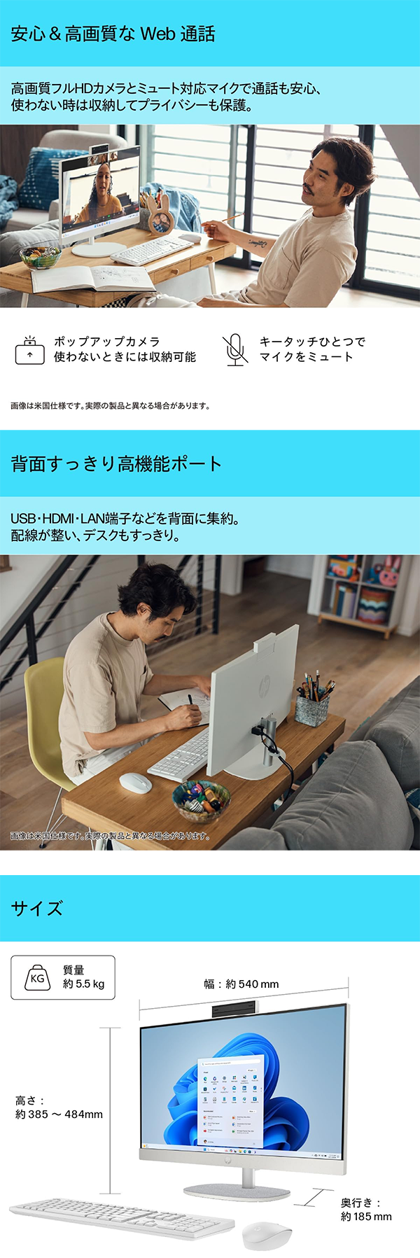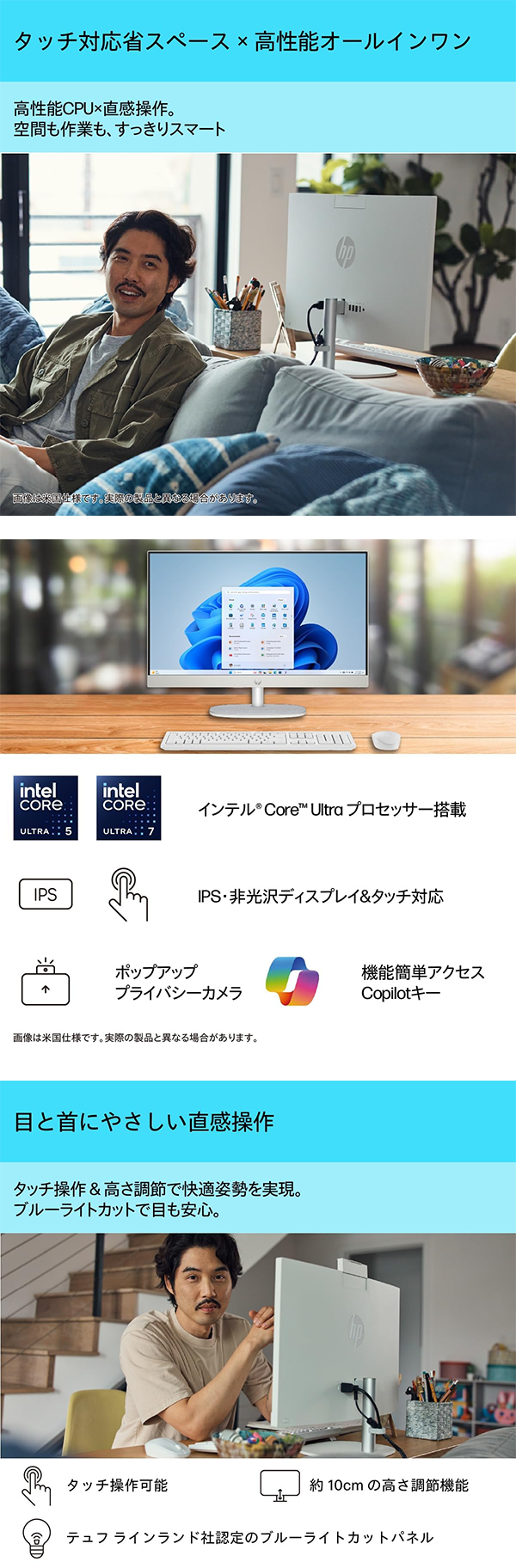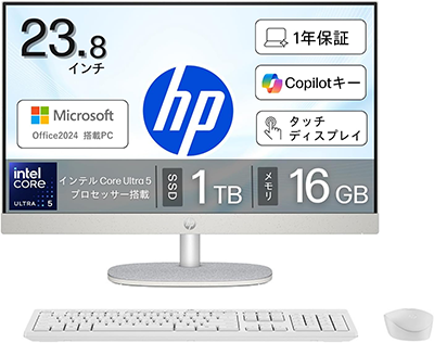 Toggle【商品の説明】新品 デスクトップパソコン 一体型 PC HP DT 24-cr2000 G1 Windows11 CPU Intel Core Ultra5 225U メモリ 16GB SSD 1TB 無線LAN Wi-fi6 タッチ対応 モニター 23.8型 MS Office 2024