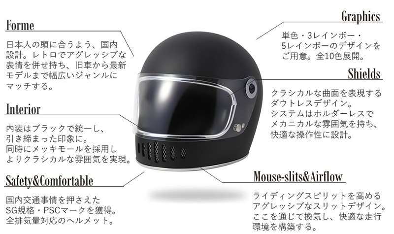 ▶ ビンテージ・クラシックスタイルと安全性を両立させたフルフェイスヘルメット