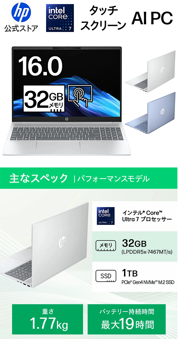 ■注目のおすすめの一台! 新品 ノートパソコン PC HP OmniBook 5 16-af 16型 Windows11 CPU Core Ultra 7 255H メモリ 32GB SSD 1TB 無線LAN Wi-Fi6 Copilotキー Office なし