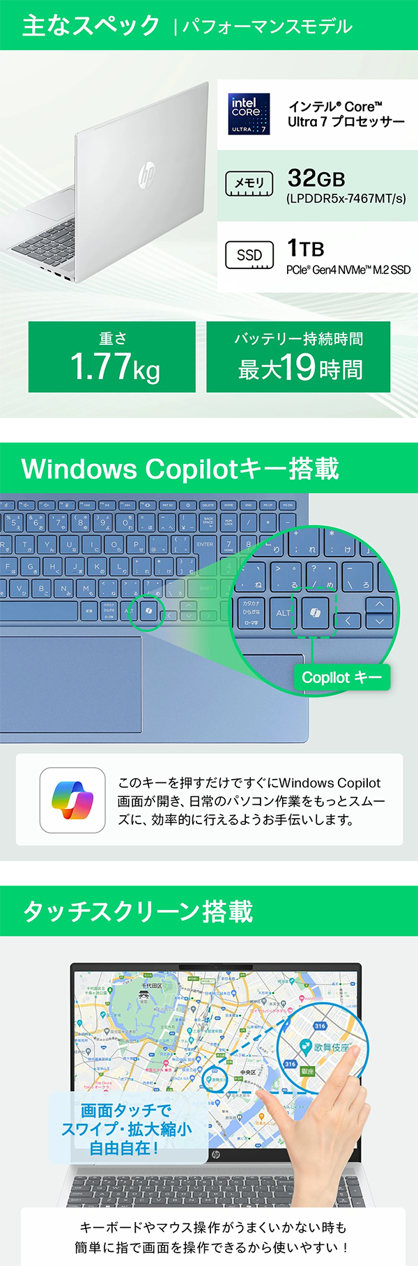 - キーボードに専用のCopilotキーを備え、AIアシスタントを即座に呼び出せます。