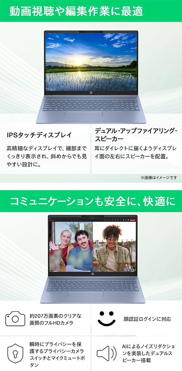 - プライバシー機能 プライバシーカメラスイッチ、マイクミュートボタン搭載