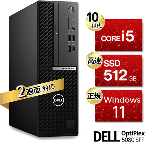 Toggle【商品の説明】中古 デスクトップパソコン PC デル Dell OptiPlex 5080 SFF Windows11 CPU Intel 10世代 Core i5-10500 メモリ 16GB SSD 512GB GPU nVidia GeForce GT 730 有線/無線LAN モニター なし WPS Office