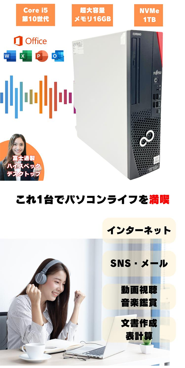 - 第10世代のCore i5プロセッサを搭載した法人向けのスリム型デスクトップPCです。